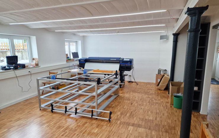 Dies bedeutete noch einmal einen spektakulären Kraftakt, mit dem teils massive Maschinerie vom zweiten Stock in das Erdgeschoss mit einer Hebebühne bewegt werden musste. Dadurch entsteht auch an unserer alten Produktionsstätte neuer Raum, den wir im nächsten Schritt seinerseits renovieren, umgestalten und neuen Funktionen zuführen möchten.