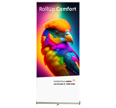 Wir modernisieren deinen Messeauftritt: das System RollUp Comfort ist noch einfacher im Aufbau, noch bequemer in der Handhabung, noch flexibler in der Anwendung – und beeindruckt mit einer Maximalgröße bis 1.000 x 2.230 mm (BxH). Ideal geeignet für den hektischen Messebetrieb.